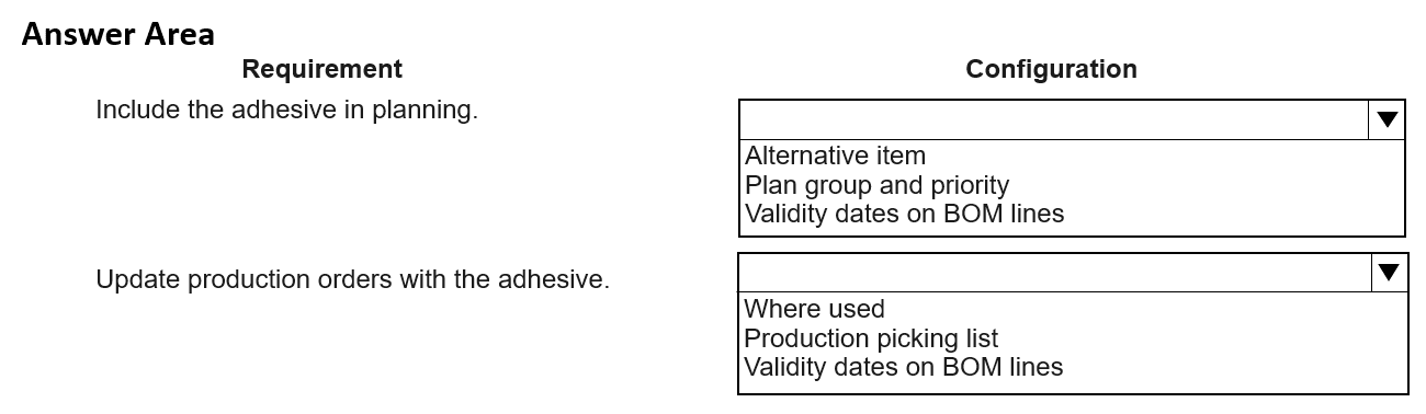 DRAG DROP A manufacturer is implementing Dynamics 365 Supply Chain Management to create blends of oil and industrial lubricant.