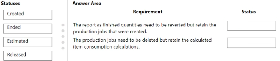 DRAG DROP A company uses Dynamics 365 Supply Chain Management.