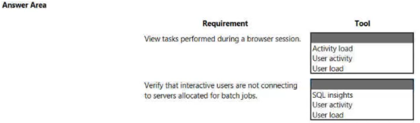 Which tool should you recommend for each requirement? To answer, select the appropriate options in the answer area.
