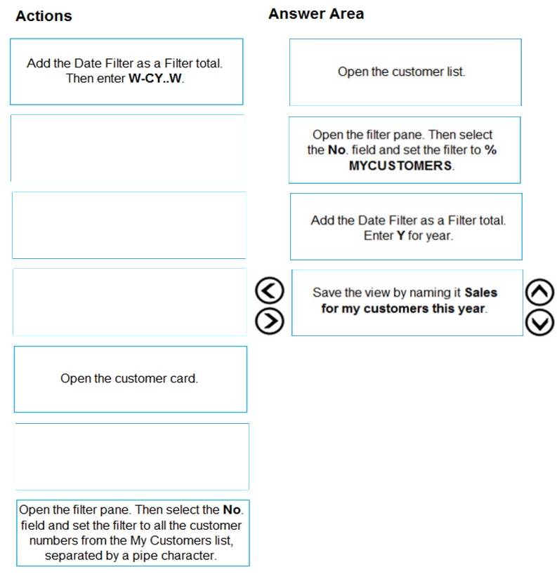 In which order should you perform the actions? To answer, move all actions from the list of actions to the answer area and arrange them in the correct order.