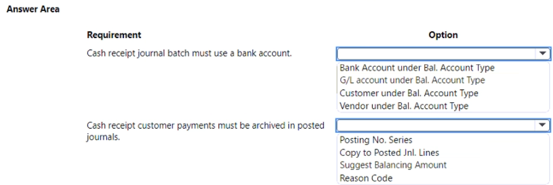 The company plans to implement a cash receipt journal batch based on the following requirements: