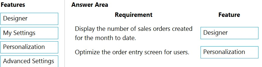 You must add new functionality to the accounts receivable role center to allow order entry clerks to view the number of sales orders that they have created for the month to date. Clerks must be able to move the new role center element to another position on their interface.