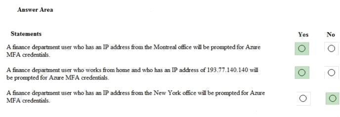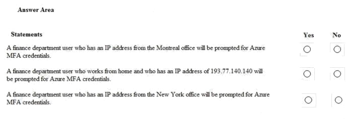 You are evaluating which finance department users will be prompted for Azure MFA credentials.