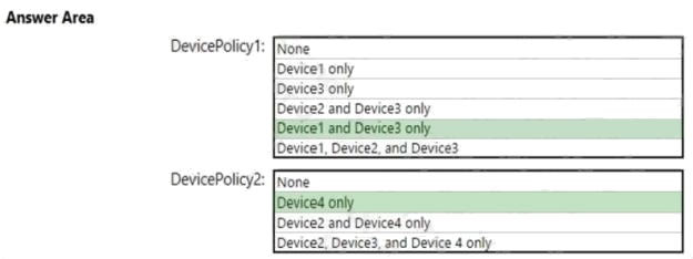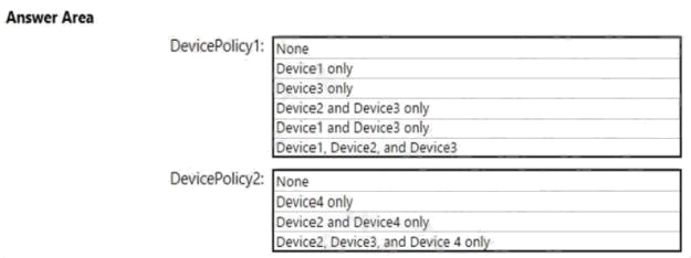 Which policies apply to which devices? To answer, select the appropriate options in the answer area.