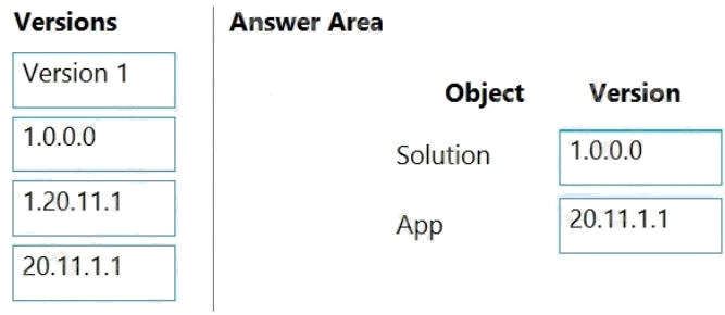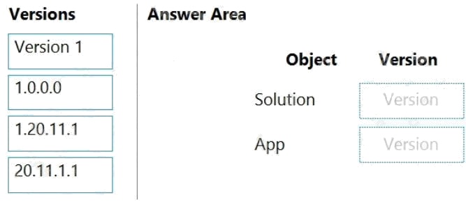 Which version numbers should you use? To answer, select the appropriate options in the answer area.