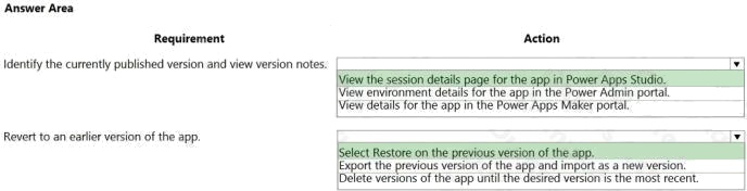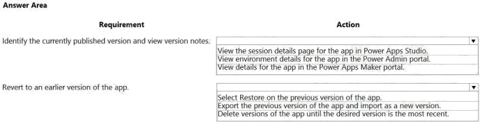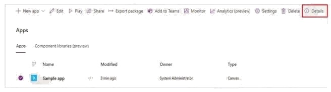 Box 1: View details for the app in the Power Apps Maker portal.
