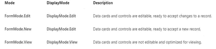 DisplayMode - The mode to use for data cards and controls within the form control.