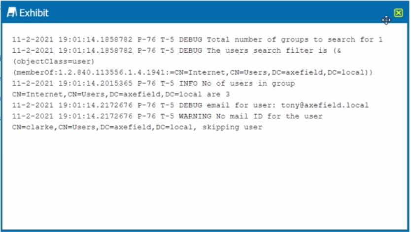 evident from the log message “WARNING No mail ID for the user: Clarke, Daxmeifield, DC=local,