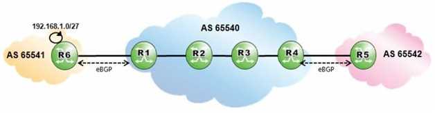 Consider two Alcatel-Lucent 7750 SRs in AS 65540. Router R1 has system address 10.10.10.1, and