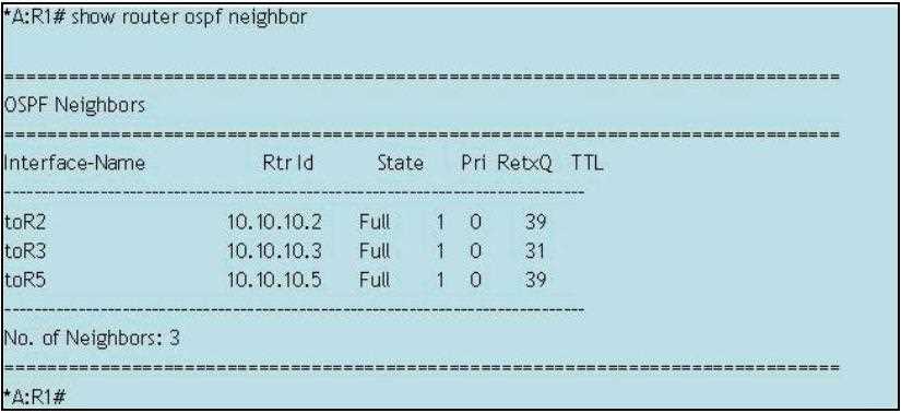 On router R1, what router ID appears for router R2 directly after these commands are executed?