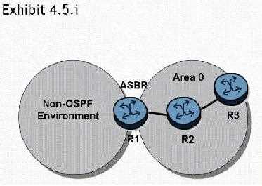 In the topology shown, router R1 is an ASBR configured to export external routes to OSPF. Assuming