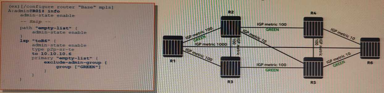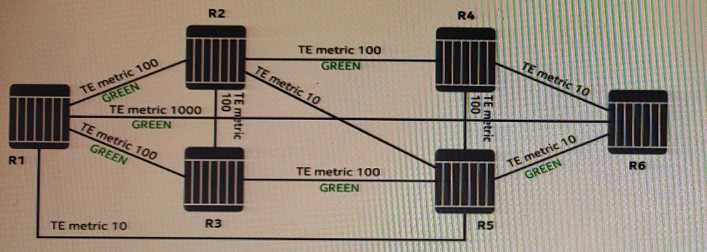 constraints. Include admin-group GREEN, use the TE metric and hop-limit 3. What routers will be