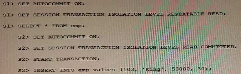 Examine these commands which execute successfully in the sequence shown in Sessions S1 and S2:
