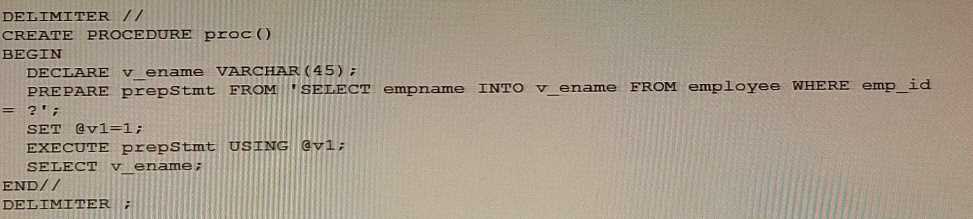 Which set of statements immediately returns empname for a given emp_id by using a parameterized