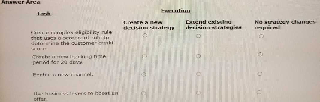 To implement the business requirement, you need to add a decision table to a decision strategy and