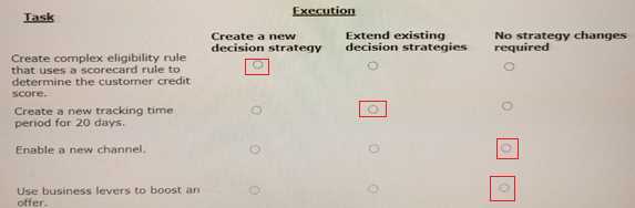 As a decisioning architect, you decide to use a decision table and a decision strategy to accomplish