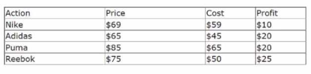 The following decision strategy outputs the most profitable shoe a retailer can sell. The profit is the