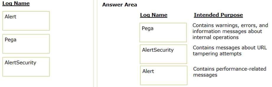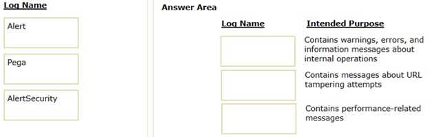 In the Answer Area, drag each log name on the left to its intended purpose on the right.