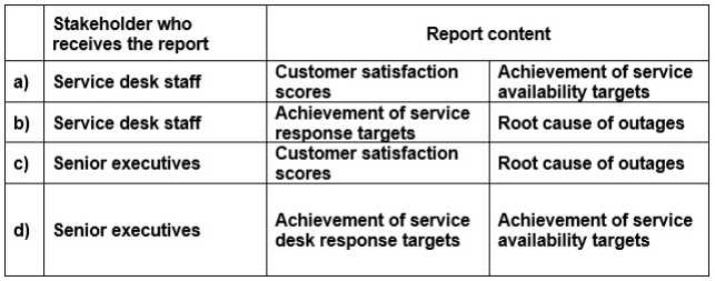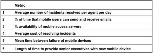 The project manager is creating a set of metrics to measure the service provided to senior executives