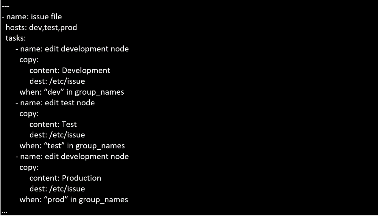 managed nodes: If host is a member of (lev then write "Development" If host is a member of test