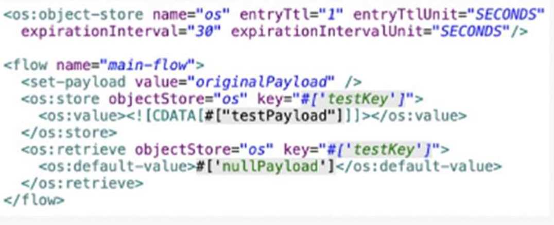 The result of the flow is nullPayload if processing between os:store and os:retrieve takes 10 seconds.