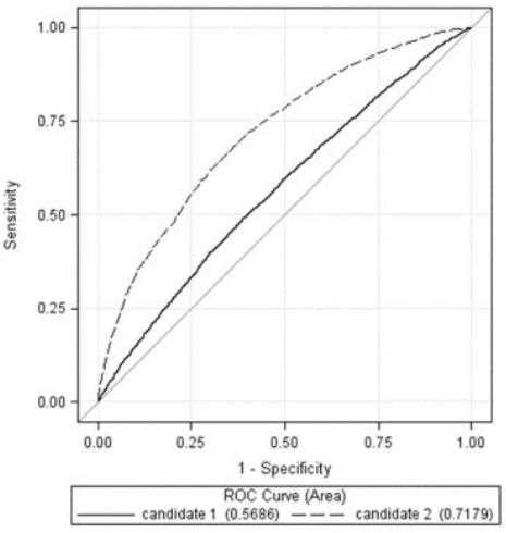 A logistic regression model was fit on a data set where 40% of the outcomes were events (TARGET=1)