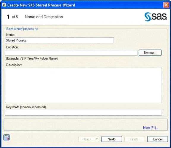 A content developer is creating a stored process using the New SAS Stored Process Wizard in SAS