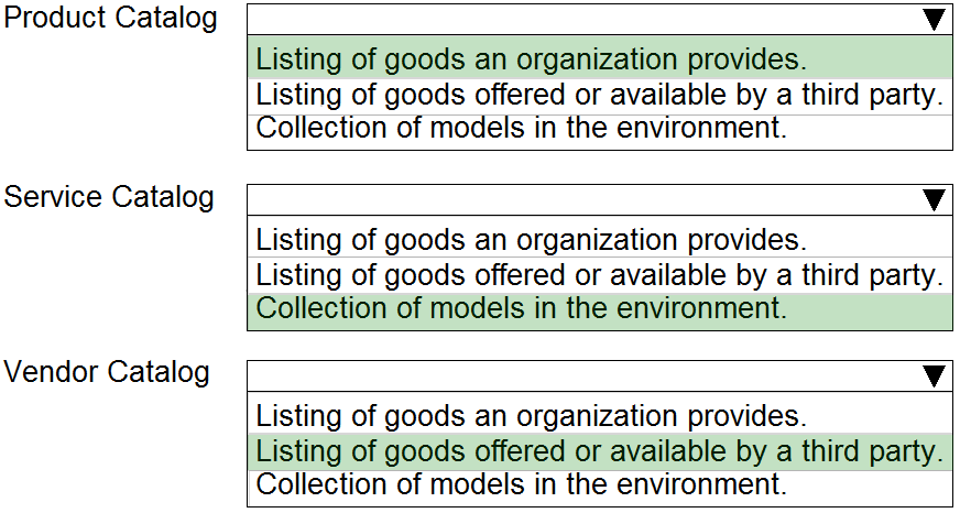 Define the three catalogs that support the request and procurement process.