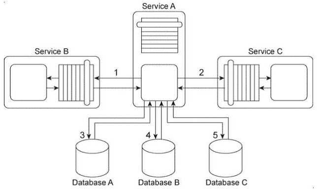 Service A is an entity service that provides a set of generic and reusable service capabilities. In order to carry out the functionality of any one of its service capabilities, Service A is required to compose Service B (1) and Service C (2) and Service A is required to access Database A (3), Database B (4), and Database C (5). These three databases are shared by other applications within the IT enterprise. All of service capabilities provided by Service A are synchronous, which means that for each request a service consumer makes. Service A is required to issue a response message after all of the processing has completed. Depending on the nature of the service consumer request, Service A may be required to hold data it receives in memory until its underlying processing completes. This includes data it may receive from either Service A or Service B or from any of the three shared databases. Service A is one of many entity services that reside in a highly normalized service inventory. Because Service A provides agnostic logic, it is heavily reused and is currently part of many service compositions. You are told that Service A has recently become unstable and unreliable. The problem has been traced to two issues with the current service architecture. First, Service B, which is also an entity service, is being increasingly reused and has itself become unstable and unreliable. When Service B fails, the failure is carried over to Service A . Secondly, shared Database B has a complex data model. Some of the queries issued by Service A to shared Database B can take a very long time to complete. What steps can be taken to solve these problems without compromising the normalization of the service inventory?