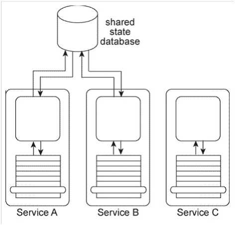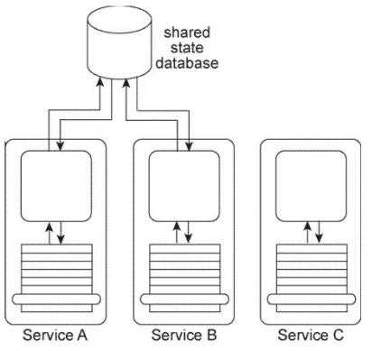 The Service Statelessness principle can be applied with the help of the State Repository pattern in order to establish a state database that Service A can use to defer state data it may be required to hold for extended periods. The Service Autonomy principle can also be applied in order to increase the physical isolation of Service A and to reduce dependencies Service A has on external resources. In support of this, the Service Data Replication pattern can be applied in order to establish a dedicated database that contains replicated data from shared Databases A, B, and C .