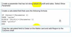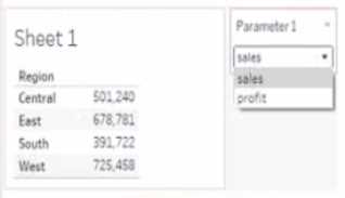 The table must show either profit or sales based on the selection from the Parameter 1 menu.