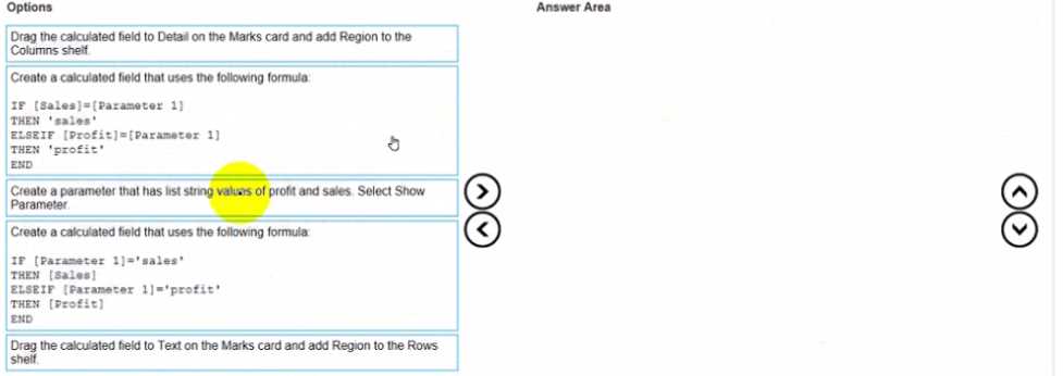 (Place the four correct options n order Use the arrows to move Options to Answer Area arrows to re-