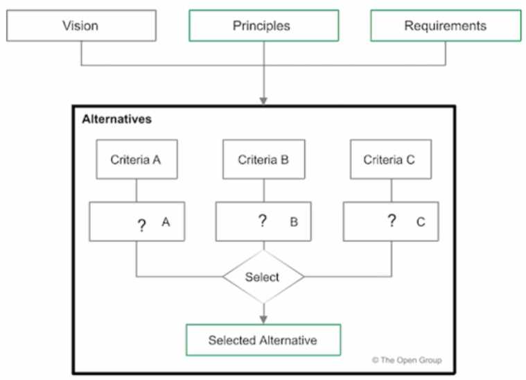 with the TOGAF approach of developing a set of potential architectures and then selecting the one